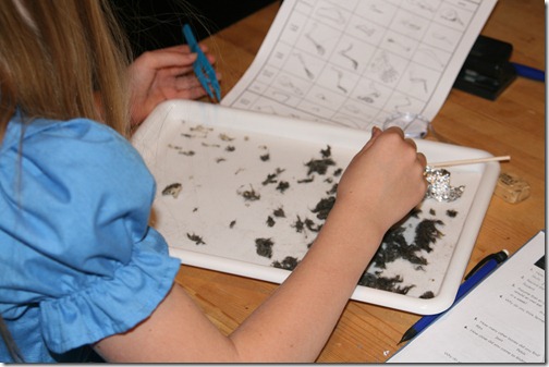 For the last day of Cyan’s wood study I bought her an owl pellet to dissect! She spent about an hour and a half pulling it apart and analyzing the bones that were inside.